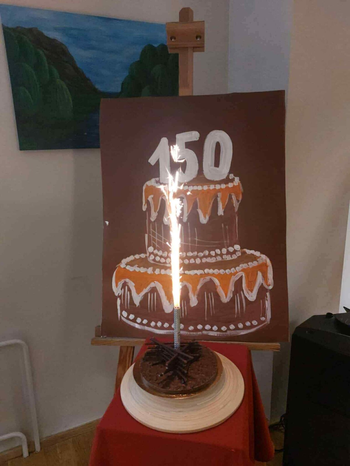 Renginį vainikavo simboliškos gimtadienio torto dalybos ir mokytojų ilgos darbo dienos pabaiga prie čiurlioniškos kafijos puodelio.