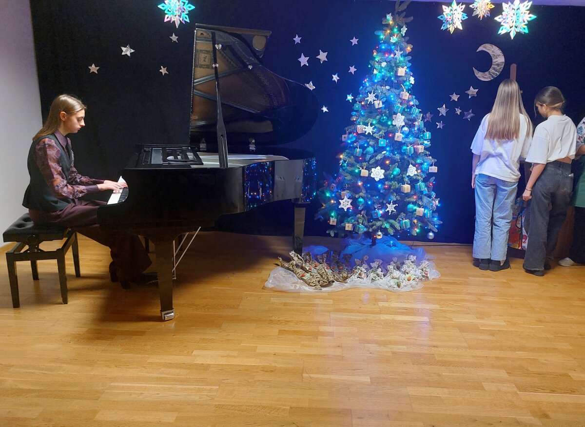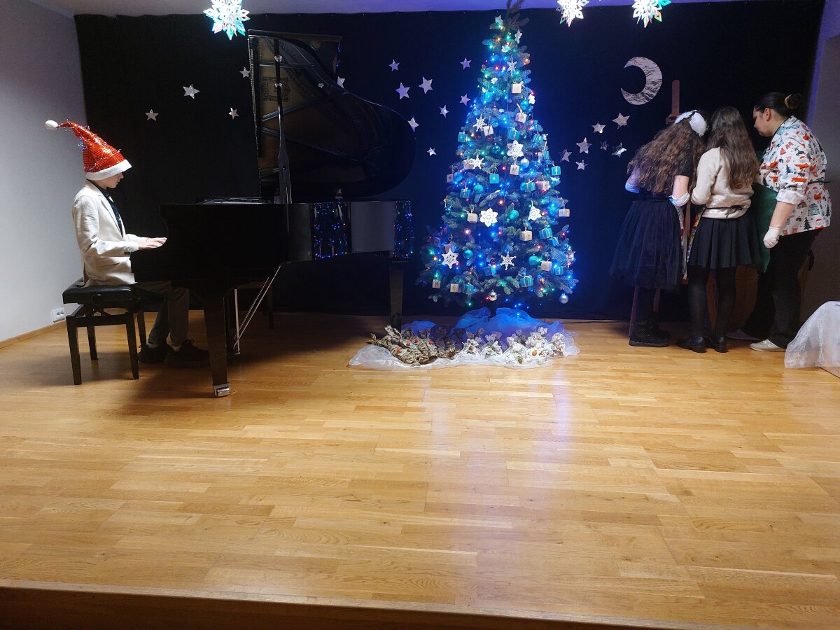 Šis koncertas – tai kelionė per garsų ir spalvų visatą. Muzika ir dailė susiliejo į vieną  visumą, vientisą kūrybos bangą. Pianistai atliko fortepijoninius kūrinius, o dailininkai scenoje koncerto metu tapė paveikslą. Koncerto siužetą ir idėją įkvėpė kompozitorius ir dailininkas Mikalojus Konstantinas Čiurlionis. Šiuo koncertu tarsi buvo užbaigti 150 – ieji M. K. Čiurlionio gimimo metai. Tai buvo misterija apie šviesą, garsą ir kūrybos galią – apie tai, kaip iš tylos gimsta grožis. Renginio pradžioje sveikinimo žodį tarė direktorės pavaduotojas Benediktas Siliūnas ir Ariogalos miesto seniūnas Saulius Buividas. Koncertą organizavo mokytojos – Lijana Raginskienė ir Alina Skirmantaitė – Ivoškienė.