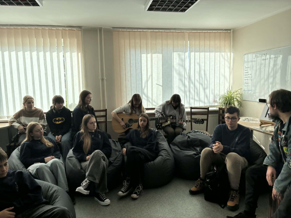Muzikos istorijos mokytoja Danguolė Gudžiuvienė ir gitaros mokytojas Domas Ročka pristatė paruoštą programą šia aktualia tema.
