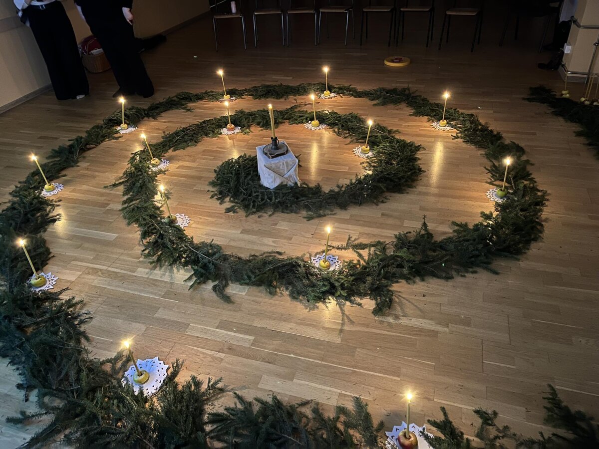 Advento spiralės vakaras - laikas, kuriame susipina advento meto susikaupimas, advento ir Kalėdų laikotarpio dainos ir simbolinė visos šeimos kelionė į savo vidinę šviesą, kuria nešini vėliau skleidžiame, dalinamės su mumis supančiais. Šis paslaptingas ritualas atkeliavo iš Valdorfo pedagogikos, jau antrus metus jį ir mūsų meno mokykloje patyrė mažieji ankstyvojo muzikinio ugdymo mokiniai drauge su tėveliais ir mokytoja Ieva Staliūniene, taip pat mielais svečiais iš Šviesos kalno, kartu su mokytoja Monika Vaznone. Vaikai su tėveliais drauge dainuodami keliavo vingiuotu taku link viltį nešančios liepsnos, degė savo ugneles, lašino vašką Kalėdų burtams atskleisti. Susibūrę klausėsi muzikinės pasakos apie grįžtančią saulę.